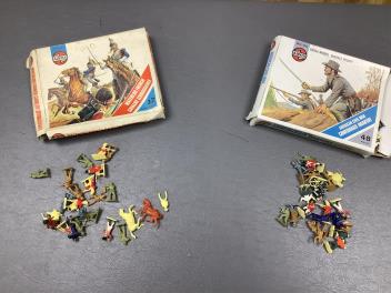 Not all boxes opened; many sets painted; some damage and missing parts seen. All used as toys; contents of many no doubt mixed, matched. How many sets are complete is unknown.