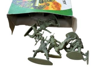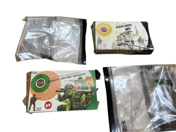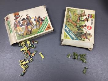 Lot 61 , Two boxes of Airfix and Matchbox plastic soldiers in 1:32 and 1:72 scale, including WWII British, German, Russian, etc. infantry, most with the original boxes included