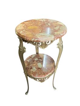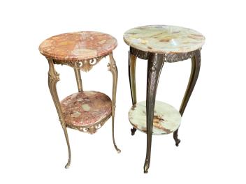 Lot 173 , Two circular onyx and gilt metal two tier tables, larger diameter 40cm, height 90cm