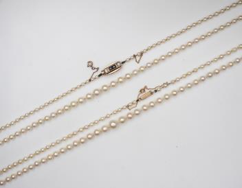 Two cultured pearl necklaces, mid 20th century