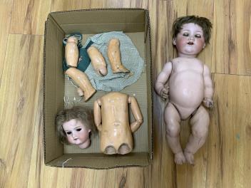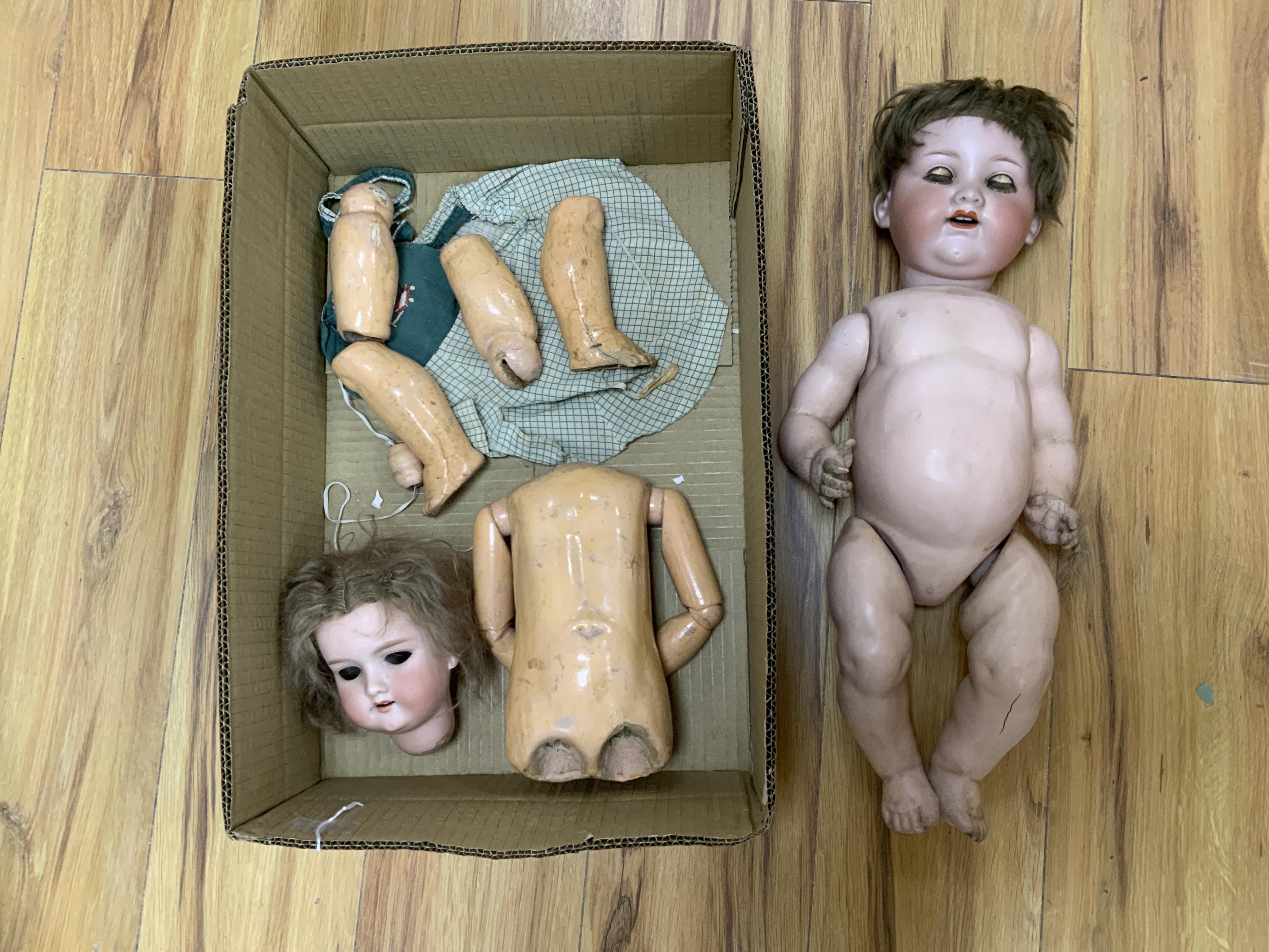 Lot 131 , Two early 20th century Armand Marseille, Germany, bisque head dolls, a 390 A6M doll (a.f. - currently with detached limbs, etc.), together with a 990 A11M baby doll, approx 48cm long