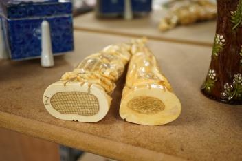 Lot 1526 , Two early 20th century Japanese walrus ivory carvings, 26cm