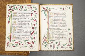 Lot 508 , Two early 20th century stamped leather books with illuminated pages, calligraphy and floral designs