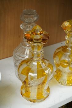 Lot 1521 , Two late 19th century Bohemian amber flashed decanters and another decanter, tallest 26cm