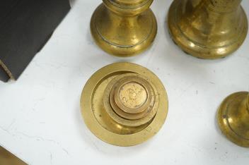 Lot 1561 , Two leather-cased spirit flasks and graduated set of brass weights