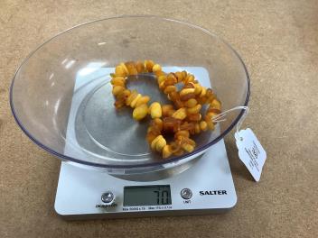 Lot 1925 , Two necklaces, comprising: a multi-strand coral necklace of torsade design, spaced by beads set with various hardstones, length 73cm; and an amber bead necklace, length 57cm