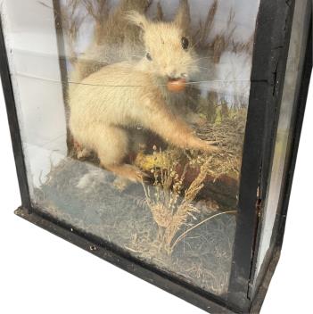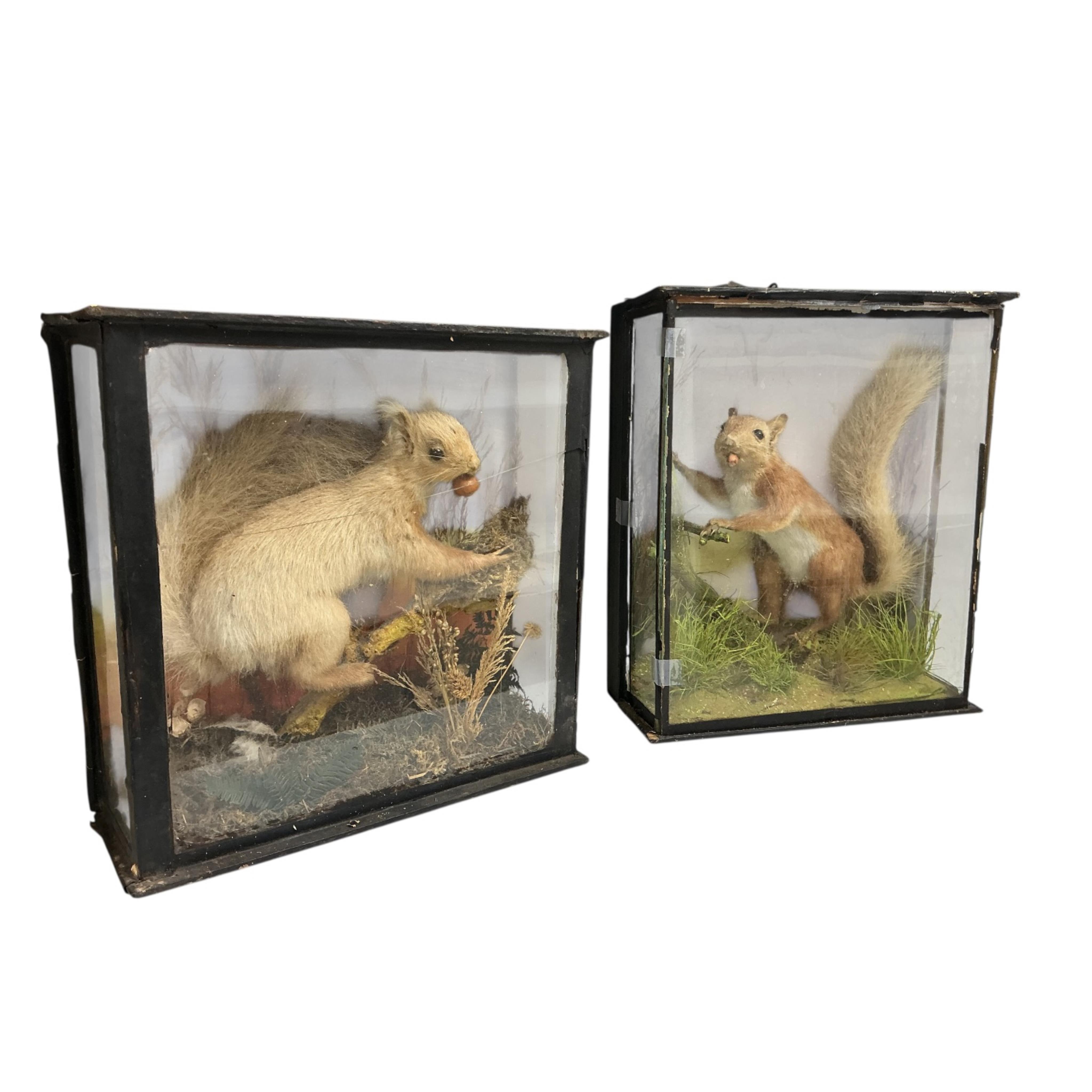 Lot 1315 , Two taxidermy red squirrels, housed in glass cases (damaged), largest 32cm high