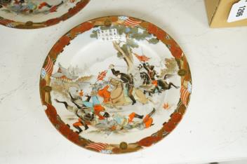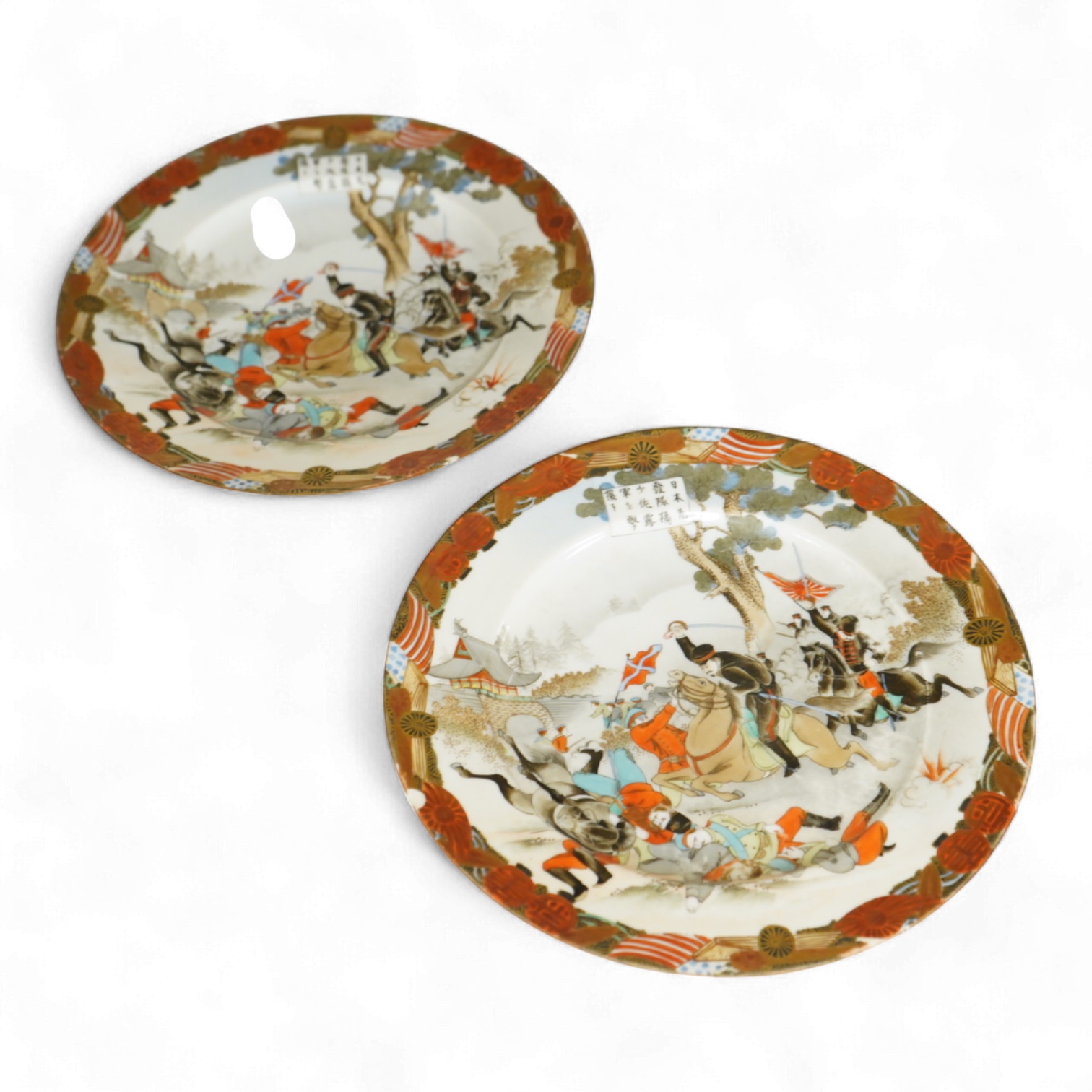Lot 454 , Two unusual Russo-Japanese war subject Kutani plates, c.1906, 21.5cm diameter