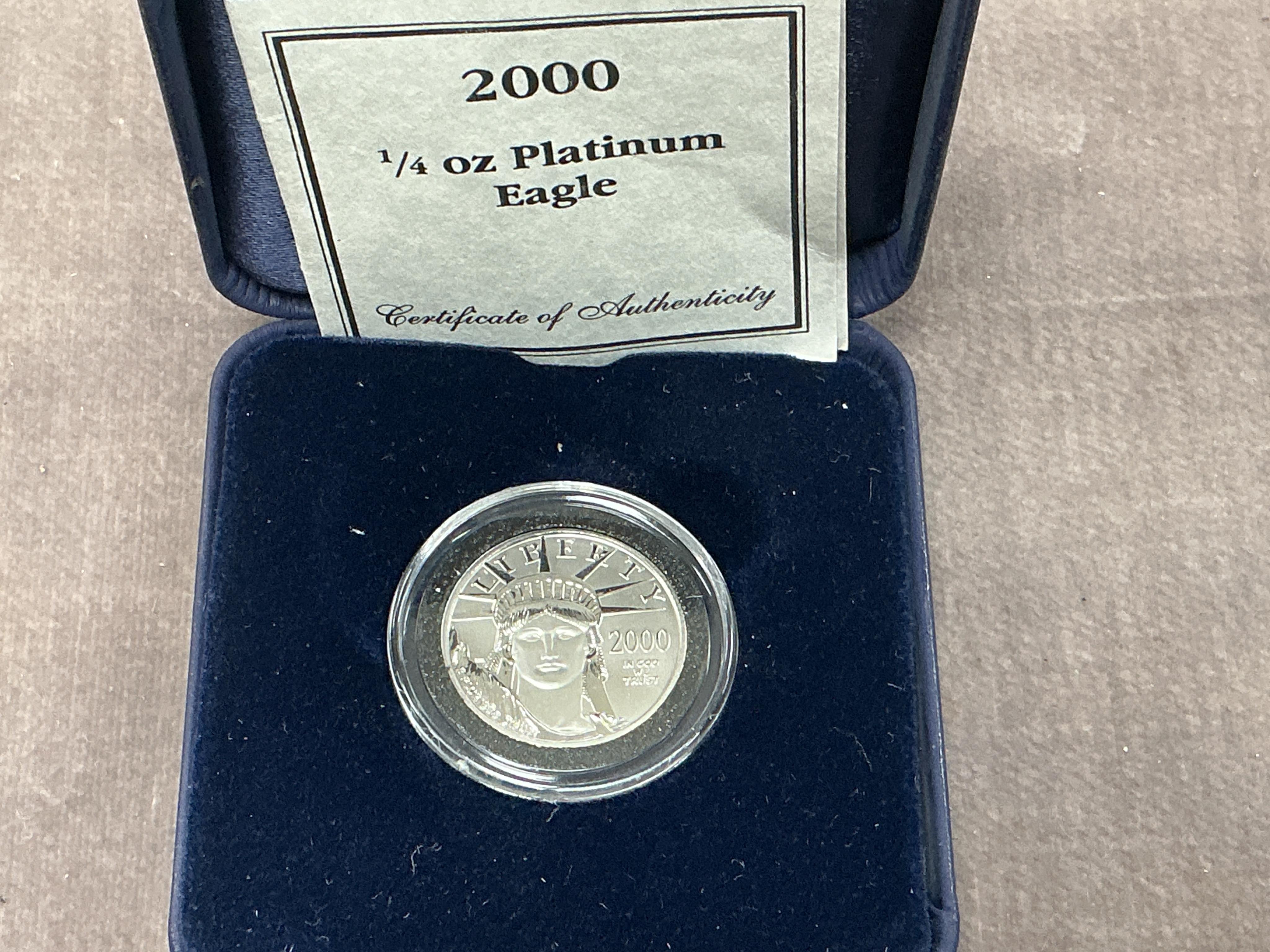 Lot 2109 , USA coins, 1/4oz. platinum Eagle $25, 2000, in Westminster case with certificate of authenticity