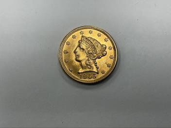 Lot 2105 , USA gold coins, gold 2 1/2 dollars, 1905, filed area below eagle otherwise VF, 4.16g
