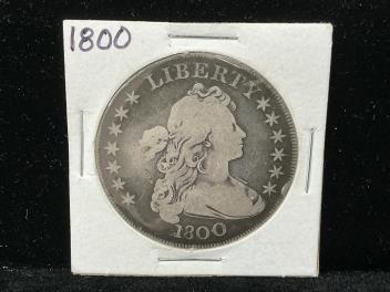 Lot 2031 , United States silver coins, draped bust dollar, 1800, VG, bought from Jeff Longeuay, Linda, California in 2008