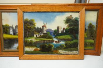 Lot 1732 , Victorian School, four reverse glass painted panels, Riverscapes, largest 39 x 60cm