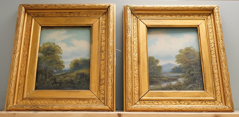 Victorian School, landscape and riverscape, unsigned, pair of oils on board, 19 x 15cm