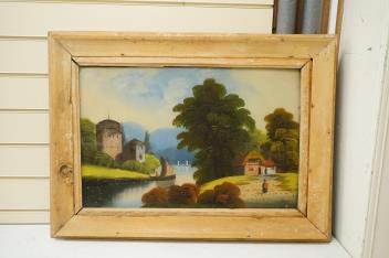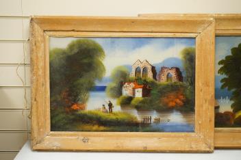 Lot 1711 , Victorian School, set of three reverse glass painted panels, Riverscapes, 38 x 59cm