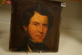 Lot 1752 , Victorian school, portrait of a gentleman, oil on canvas, cut down, unframed, 33 x 31cm