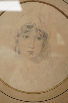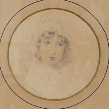 Lot 1760 , W. T. Toffin, after Sir Thomas Lawrence (1769-1830), Portrait of Lady Augusta Lowther (née Fane), Countess of Lonsdale, inscribed verso, tondo, watercolour and pencil wash, 13.5cm diameter