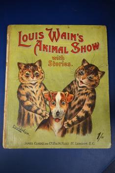 Lot 1295 , Wain, Louis - Louis Wain's Animal Show, with Stories in Prose and Verse. 1st edition, 4to, original pictorial boards, numerous black and white illustrations by Louis Wain, contemporary ink presentation inscriptions to fr