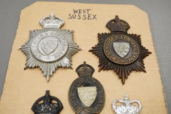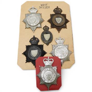 Lot 135 , West Sussex Constabulary helmet plates: four Kings crown, two Queens crown, (6).