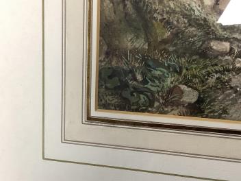 Possible oxidisation upper left, see 9th image; otherwise good. Frame and mount good. No further clues provided verso.