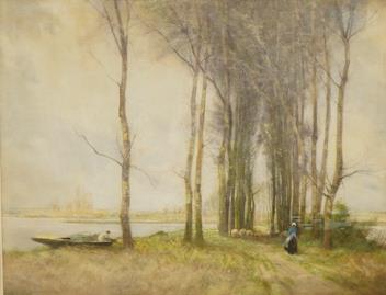 Lot 2765 , William Tatton Winter RBA (1855-1928), Riverscape with flock of sheep, signed, watercolour, 56 x 73cm