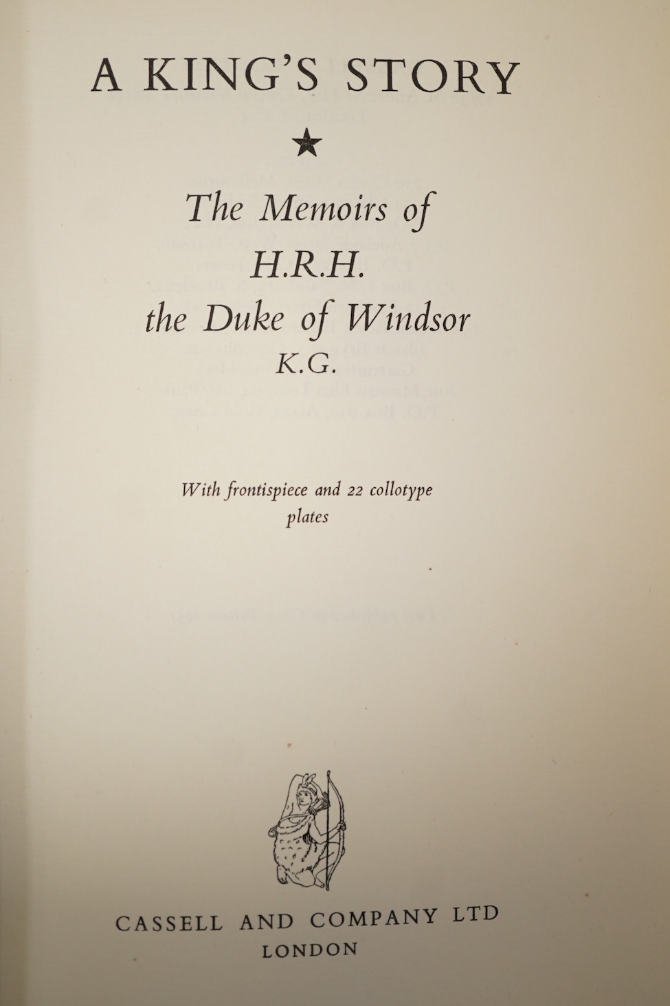 Lot 1188 , Windsor, HRH. The Duke of - A King's Story: the memoirs of ... Limited Edition (of 270 numbered copies, signed by HRH.) frontis. and 22 collotye photo. plates; original red morocco, gilt arms on upper board, gilt lettere