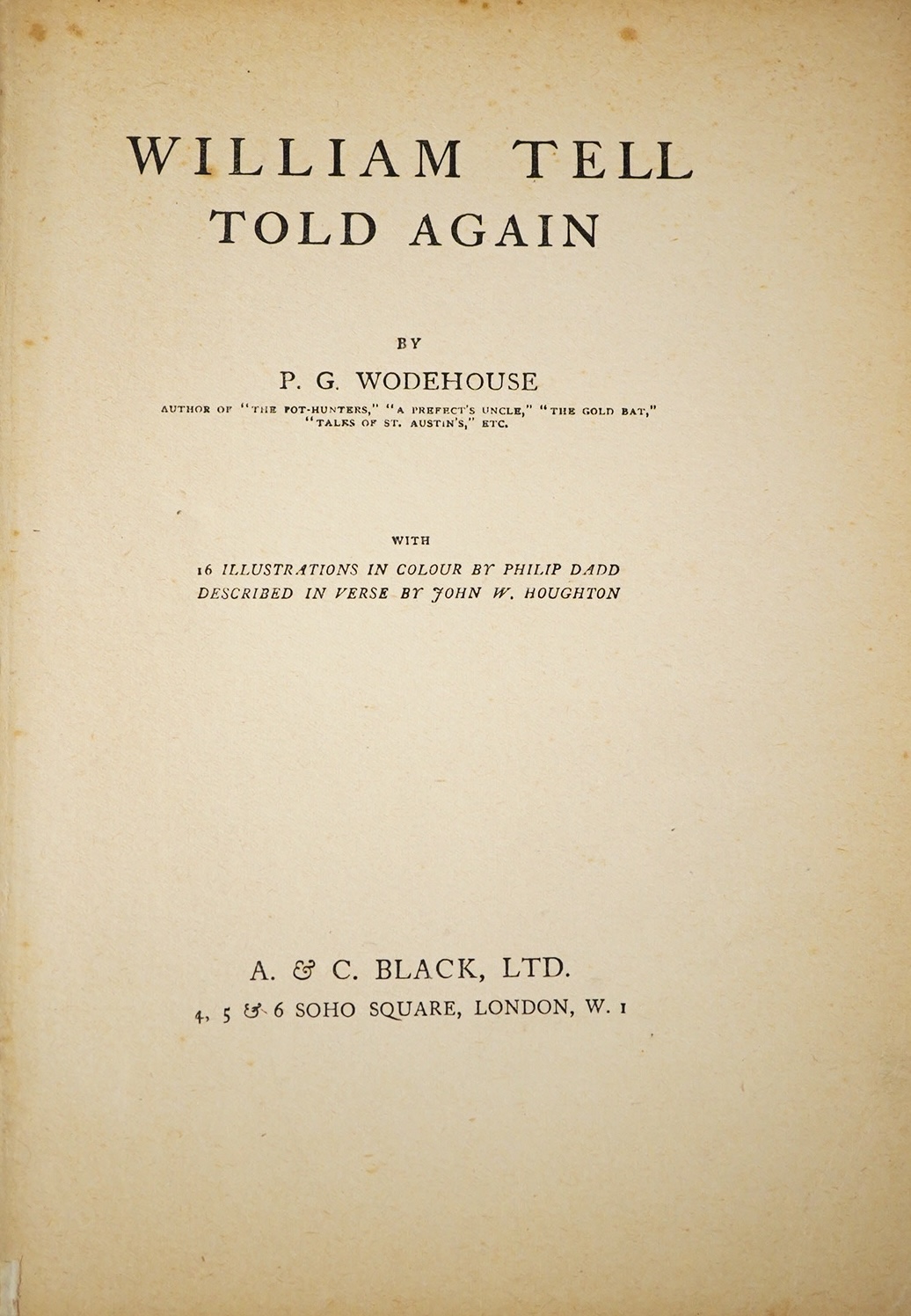 ° Wodehouse, P.G. - William Tell Told Again. 16 coloured plates (with captioned guards), by Philip Dadd; original coloured pictorial cloth. A. & C. Black, (reprinted 1905?)