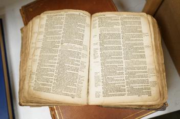 Lot 1351 , [Bible - The first Black Letter Quarto Edition of the King James Version] The Holy Bible, Containing the Old Testament, and the New: Newly Translated out of the Original Tongues ... General and NT. engraved titles (both