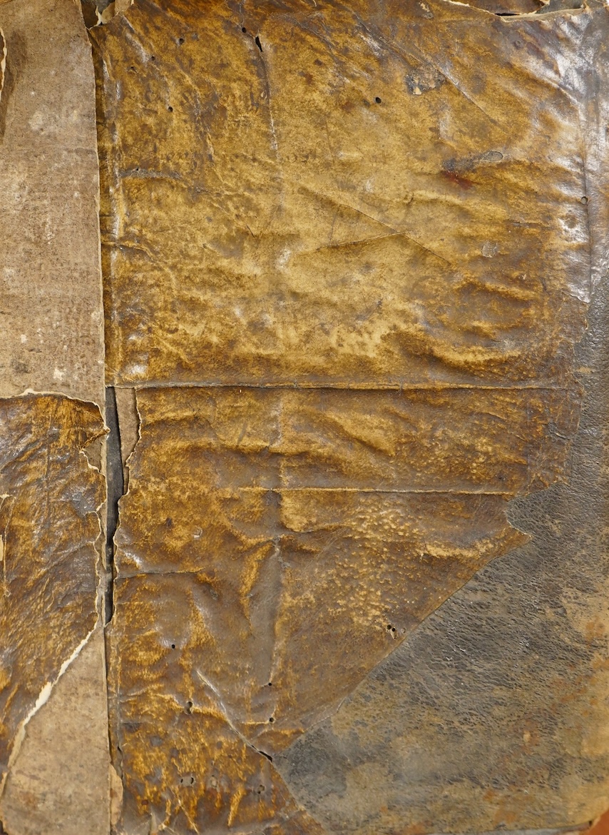 ° [Bible - The first Black Letter Quarto Edition of the King James Version] The Holy Bible, Containing the Old Testament, and the New: Newly Translated out of the Original Tongues ... General and NT. engraved titles (both with pictorial borders and heart-shaped centre), head and tailpiece decorations, decorated initial letters; includes the Apocrypha; preceded by the Genealogies (engraved title and illus.) Signatures - A8, A-Z8, Aa-Z8, Aaa-Sss8; no foliation; contemp. vellum (distressed), 4to. Imprinted at London By Robert Barker ... 1613. *Herbert 323; some earlier 18th cent. ms. notes (Molland family) end of Old and New Testaments